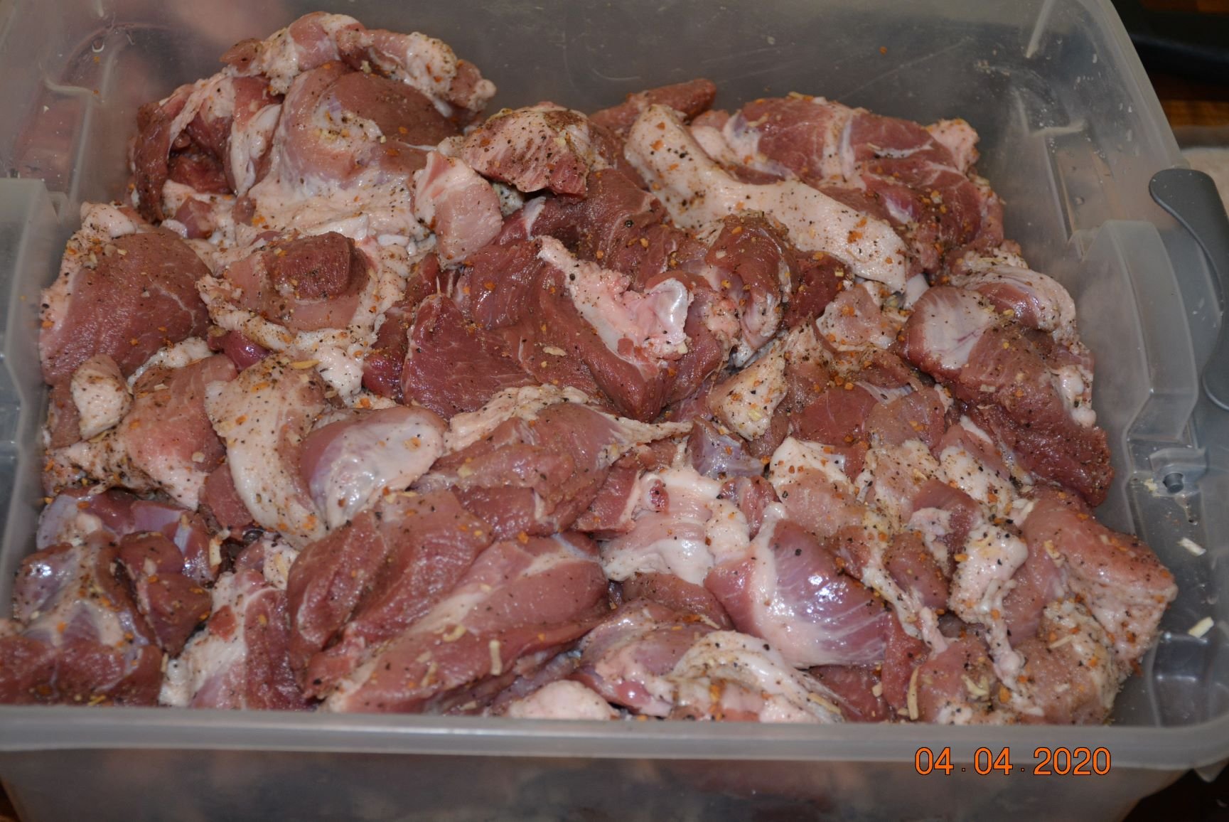Mix the salts and spices together and mix well with the cubed venison and let rest in refrigerator while you are preparing your jars. It might be better to let it rest overnight but I don't.