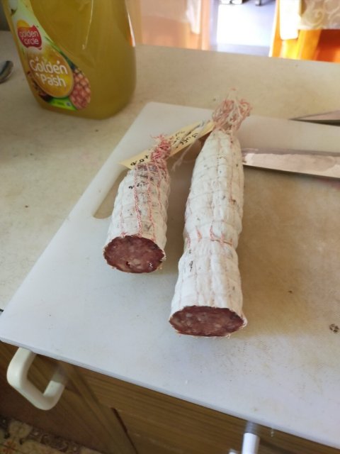 Couple sticks of chorizo. Not terrible but not fantastic. First ones i kept. Into fridge to equalise..