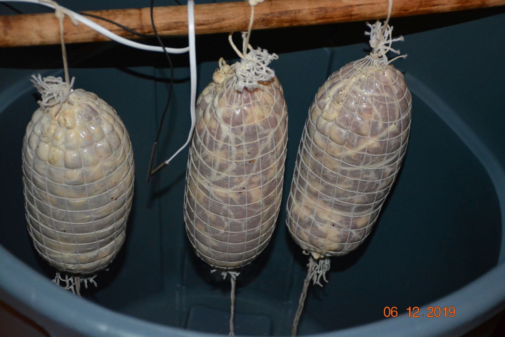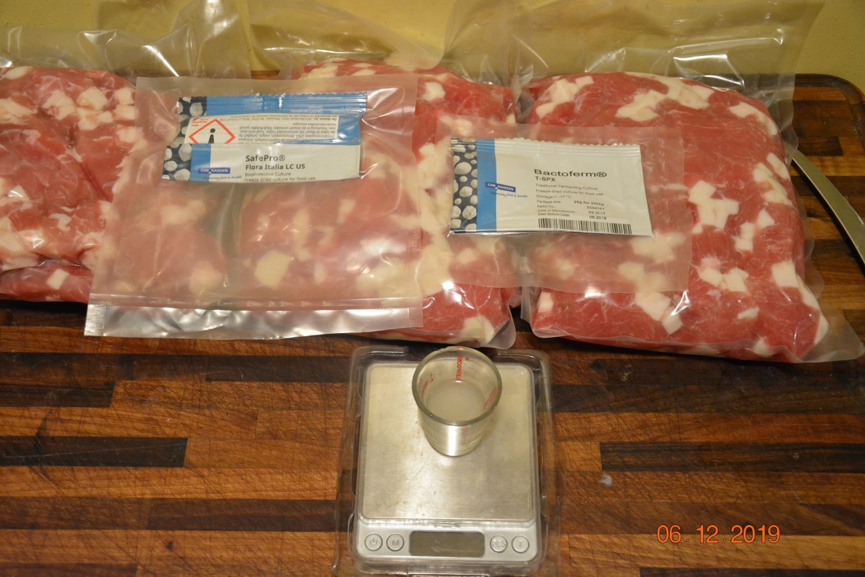 During that time - spices prepared, starter culture dehydrated, staffer and casings ready.