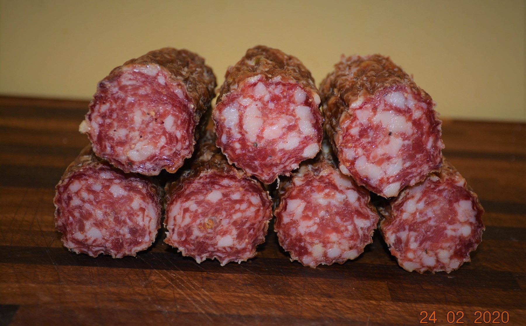 Salami looks really good! Nice even drying. After almost a year without a curing chamber I finally found some time and refitted another fridge and in this one I also nstalled a dehumidifier.