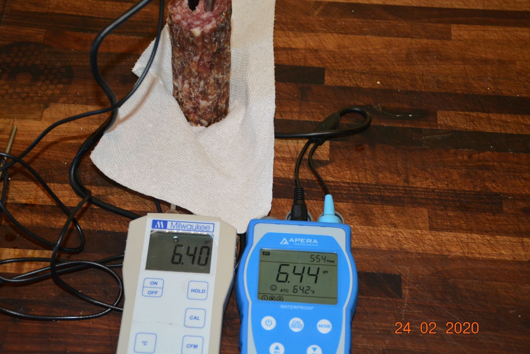 Your pH readings are way out of whack because the meat is too dry. I'll bet that the true pH is no more than 5.2 maybe 5.3. Take a look at the last part of this video. https://www.youtube.com/watch?v=cbuz94P ... bN5gFkh_Sw