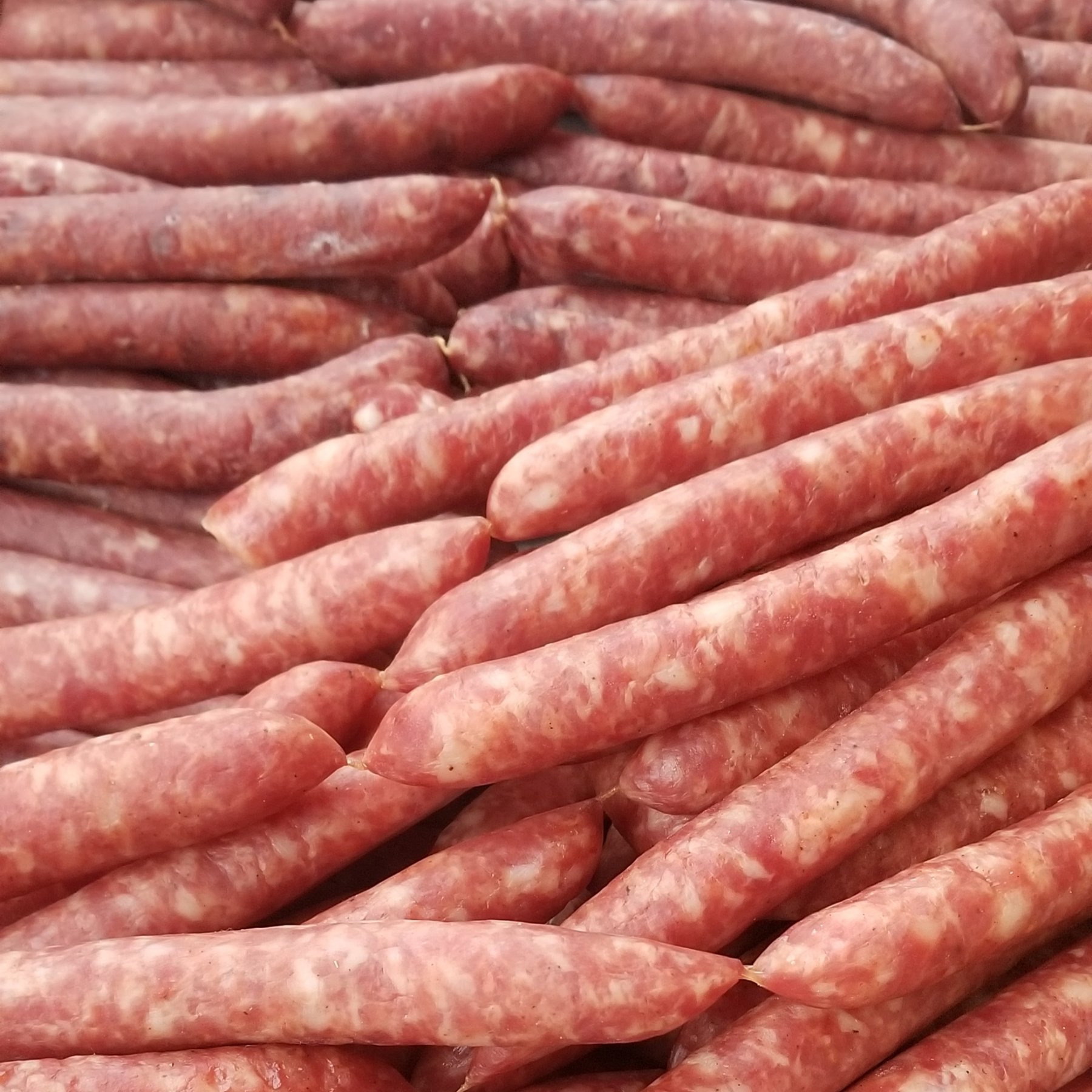 I made 2 Sausages, one contains 15% Pork Liver and the spices are a bit different, but the important stuff is the same. Stuffed in sheep casings.