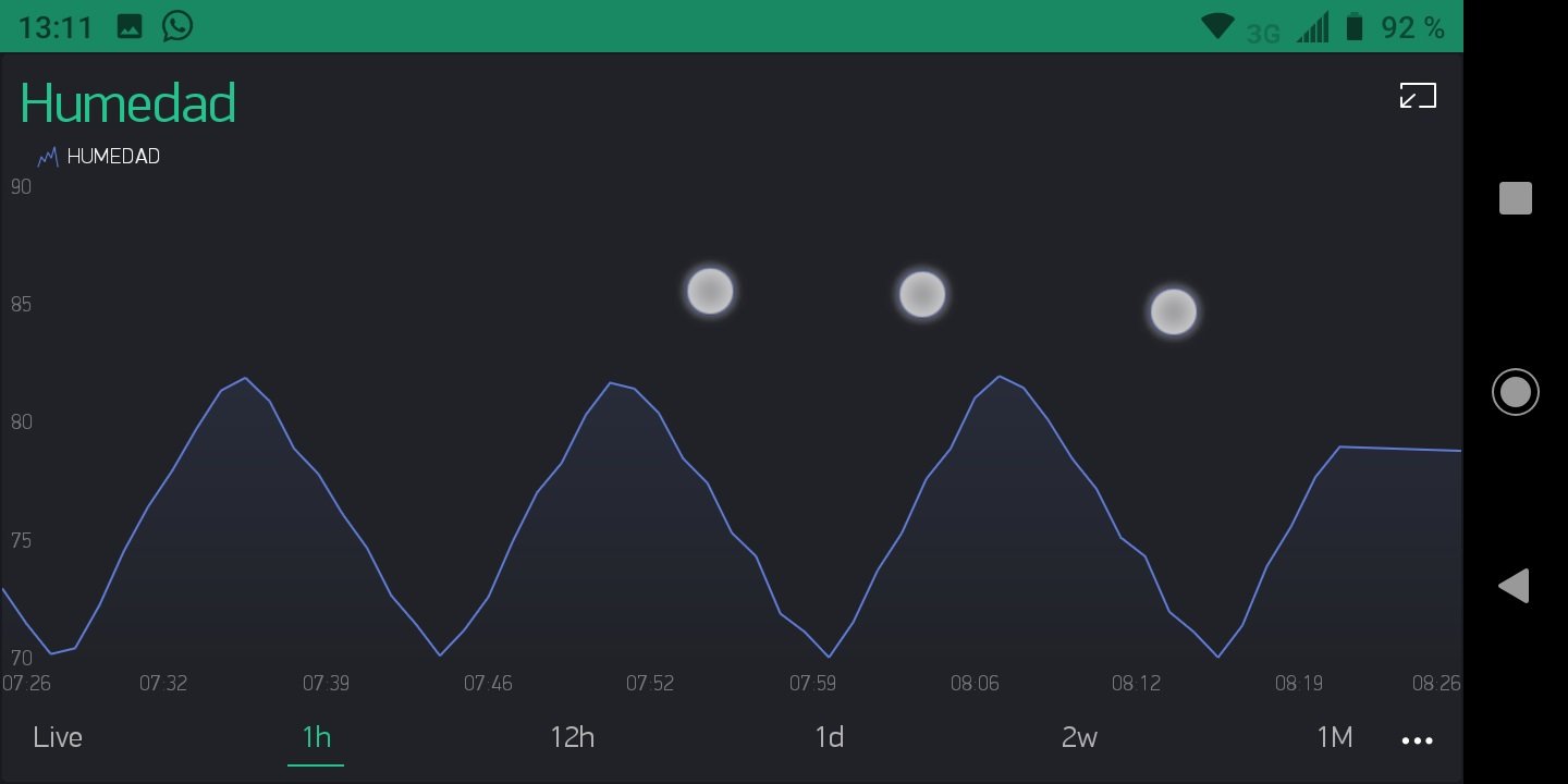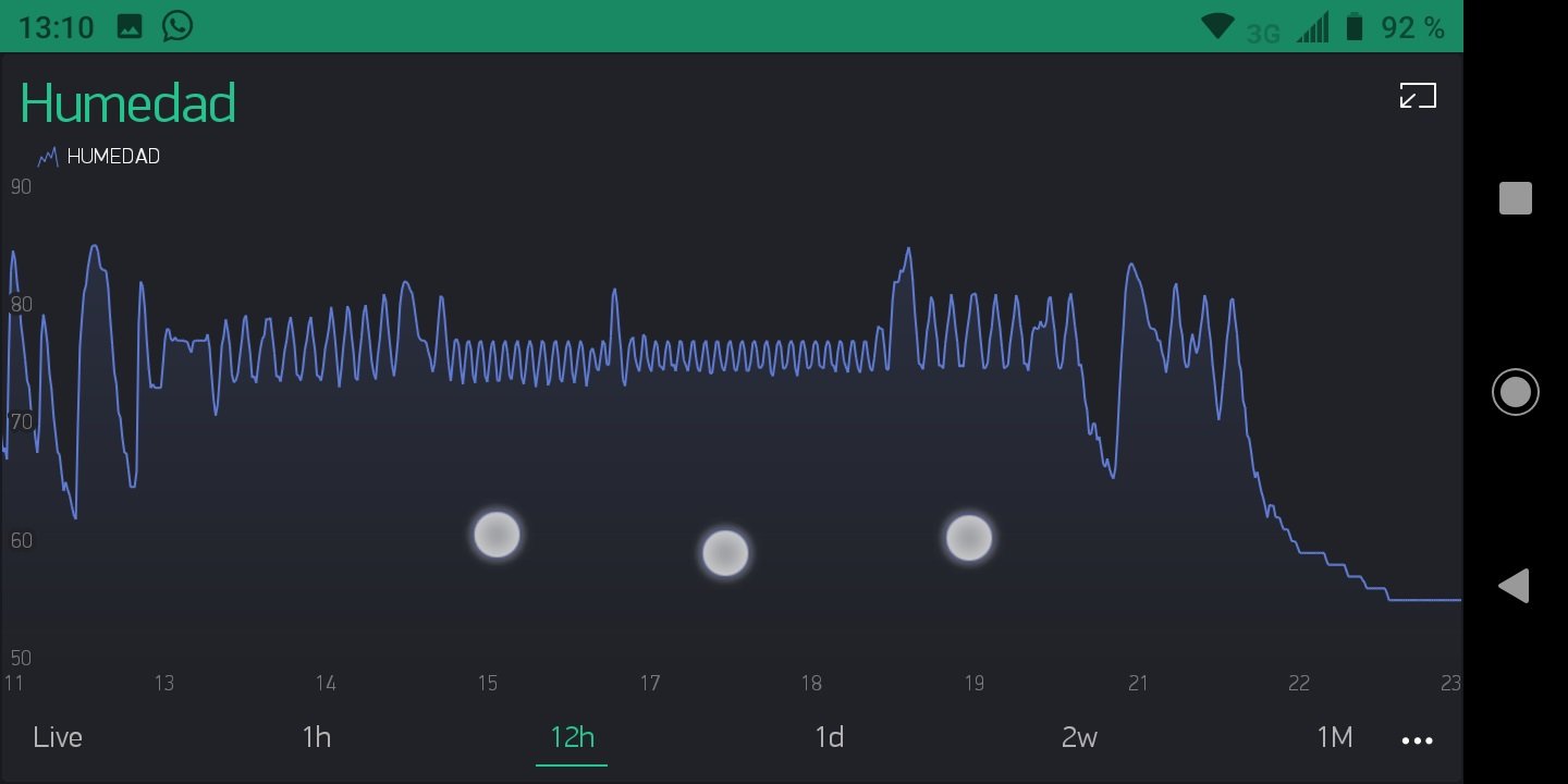 This is how my screen looks like (the temperature chart is above and cannot be seen in the picture). As you can see my min humidity is 71 and the max is 79. So it gets to 69-70% and it starts going up to 80-81%. It takes 5min to go up and 5 more to go down which makes the relay click every 5min. I don't like this setup because it gets too low.