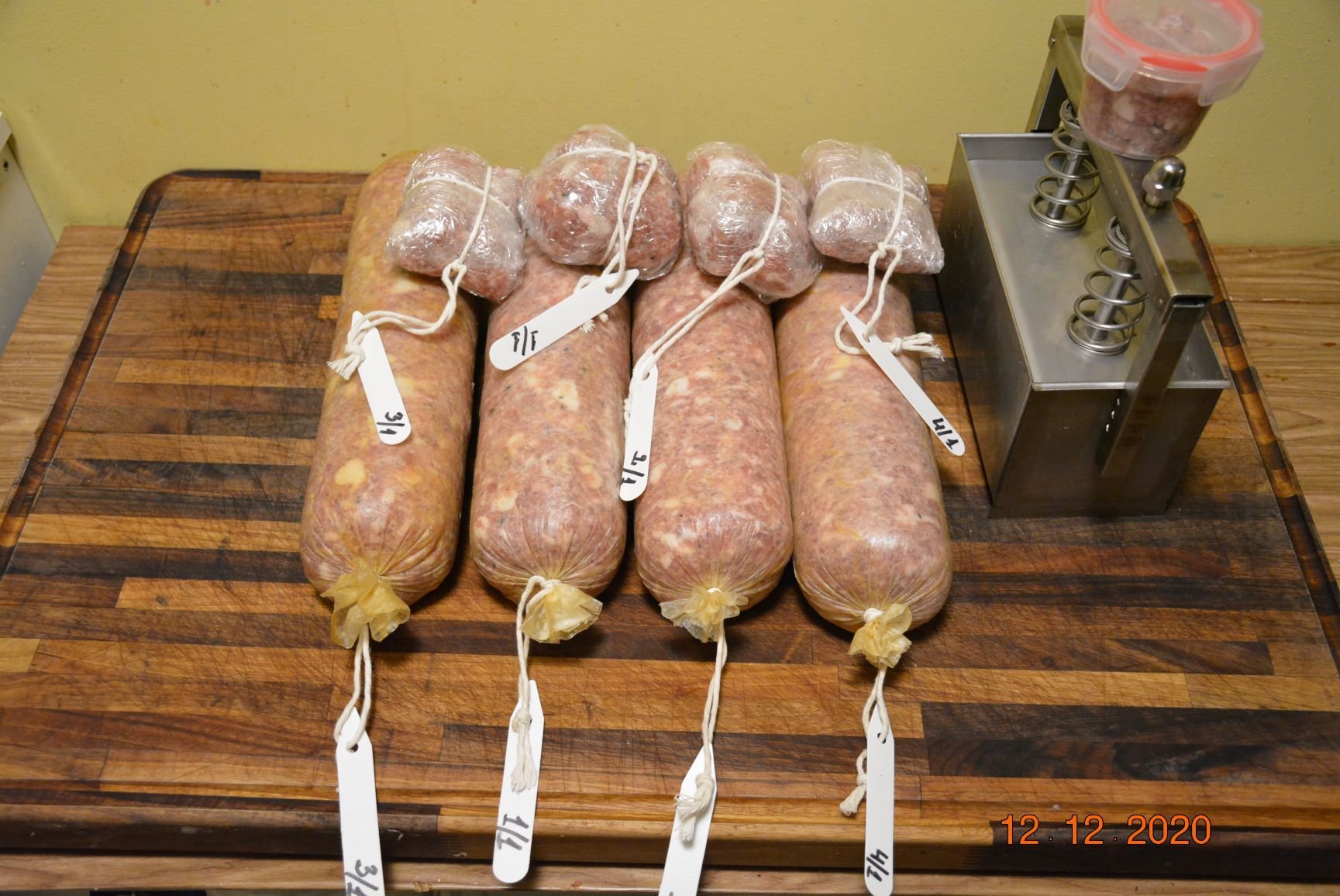 So I got - same meats, same process, same sugars, same spices, same casings. Differences - touching spices/herbs, starter cultures. Two different fermenting temperatures.