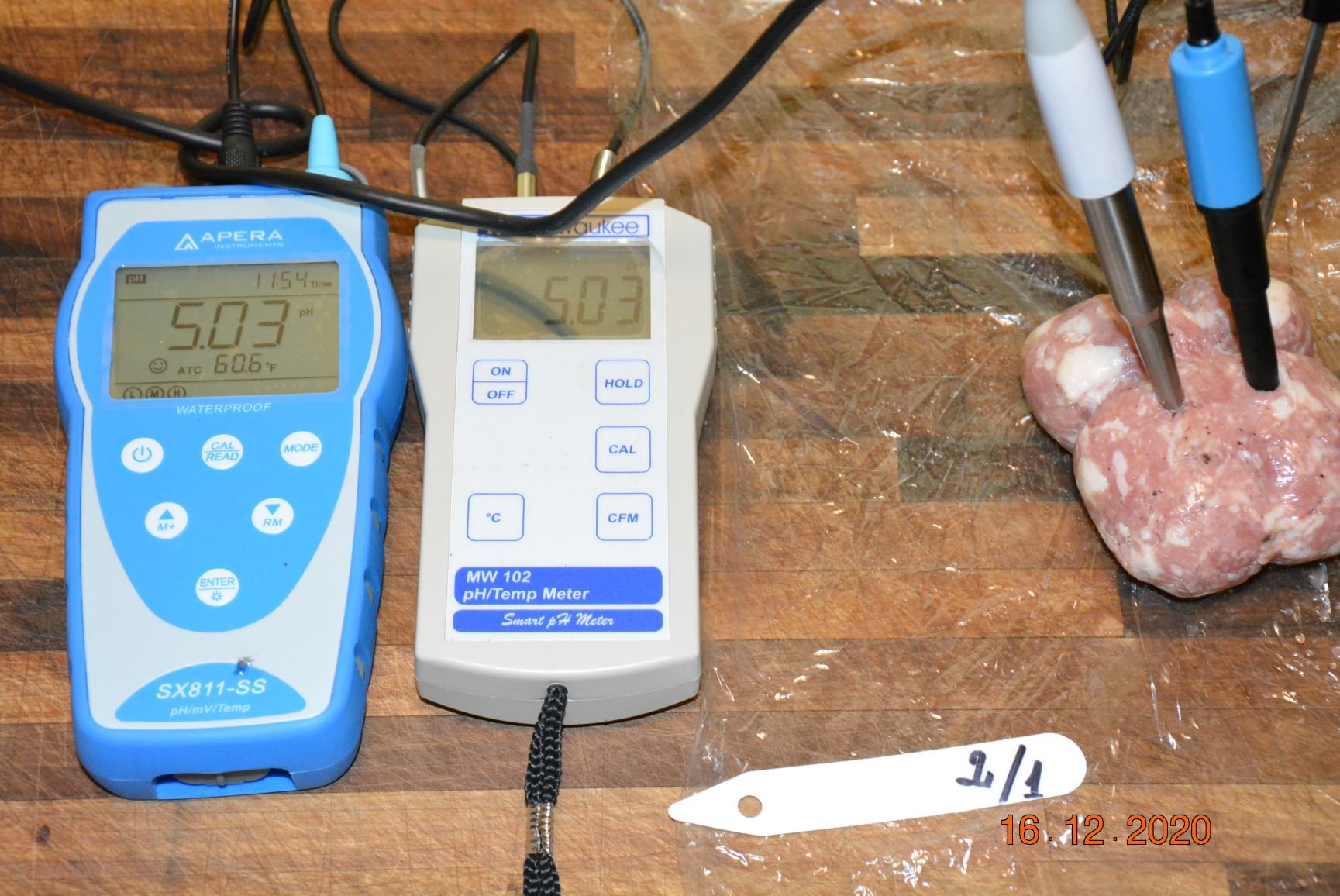 One bat and one probe of each salami were fermented in temp. 22-23*C and 90+% humidity> second part (one baton and one probe were fermented at garage temperature of 8-10 *C and 90 % humidity).