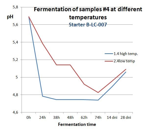 It is end of my 1-st step. Further experiments needed. As today - fermentation is taking place in lower temperatures also, it just taking longer. From my point of view LAB fermenting until they have "food".