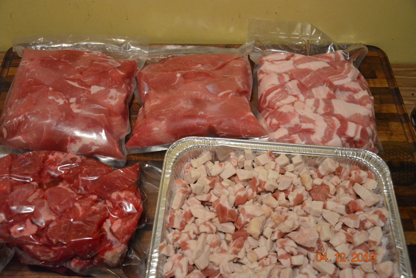Meats cubed in egg size, salt and cure added - vac pack and left 48 hours in refrigerator.